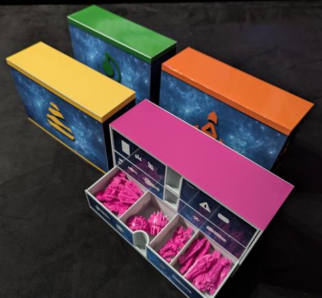 The insert is designed to work with our free planet and tech card app, and when combined they really cut down on table space. It also uses our preferred color-specific faction tokens (Thunder's Edge comes with a set if you haven't already upgraded to 3D printed or acrylic tokens). If you still want to use planet cards and faction-specific tokens, don't worry, there's room for them in the third box.